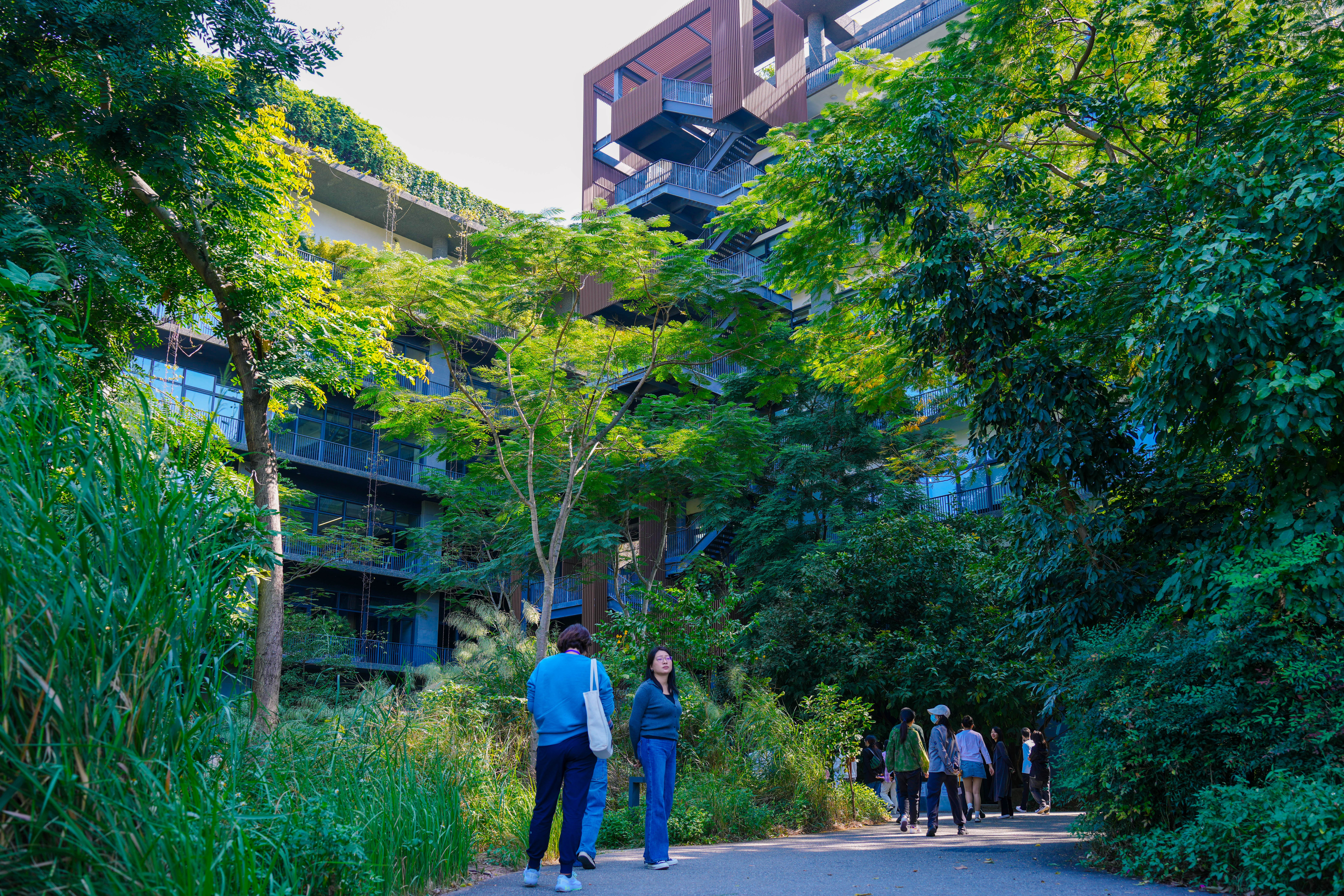 深圳市宝安区泰华梧桐岛写字楼外墙有青藤环绕。来源:新华社